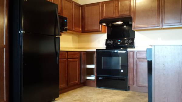 - kitchen appliances include stove, refrigerator, microwave, garbage disposal, and dishwasher