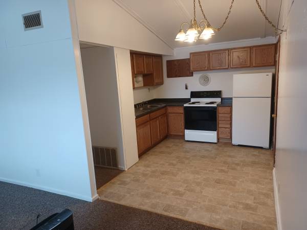 Perfect location. In sight of Merrill Festival Grounds. Close to shopping, recreation and freeway access. Very clean LOWER apartment with great view. Energy efficient. Occupancy 1-2persons per apartment. Off street parking w/yard lights at night. `1 bedroom w/large closets. Large kitchen w/nice cabinets, electric range, refrigerator included. Bath w/tub-shower, vanity and linen closet. Very large living room. Energy efficient windows and Carpet in BR's and LR. Common laundry area w/coin operated washers and dryers. Mail boxes inside building. One (only 1) Cat allowed. (Additional $35 per month). Sorry, no dogs or smoking. 1 year lease.
