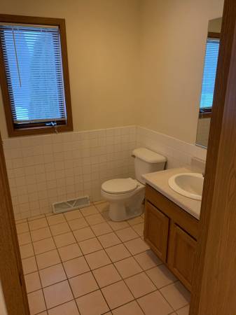 - Full size upstairs bathroom, Also main level half-bathroom (toilet/sink/vanity).