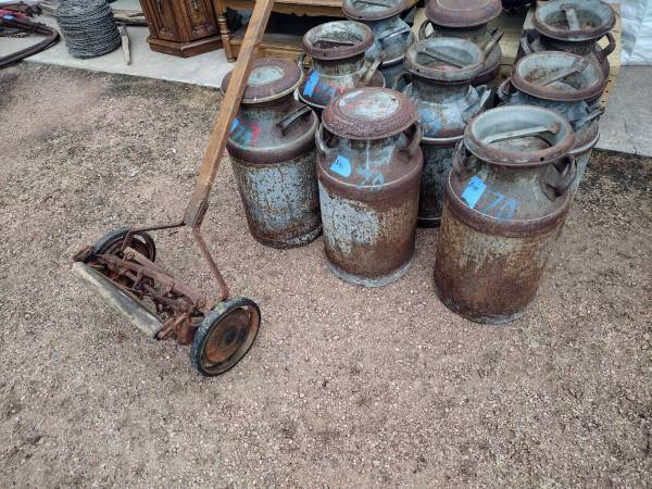Milk Cans and other Antiques for sale Horse yolks, hay forks, hay trolley, car ramps Milk cans are in nice condition