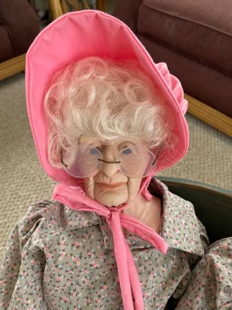 Limited edition custom sleigh dated 1988 with doll from TN. Grandma has a broken foot, but still displays nice.