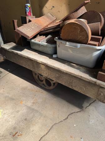 Antique railroad cart. The items on the cart are for sale separately, not included in sale of cart. Text me and I’ll call you back. Local pickup only. Cash on pickup only. 7one5-5eight1-00fourfour