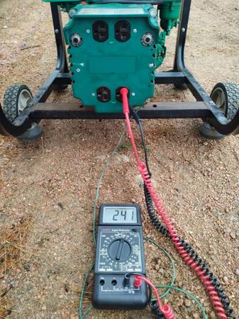 120 volt and 240 volt outlets.Briggs and Stratton 8 HP engine. Runs good, little use. Big enough for most household needs.Trade for certain hunting items