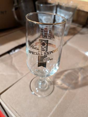 I have beer glasses from a variety of brands by the case. I have glasses from Stella, Budweiser, Miller lite , goose Island,, old style packer glasses, special export beer etc. I have around 10 cases of glasses. Typically a case holds 24 glasses. I'm asking a dollar a glass if you buy them by the case. If you want to pick and choose I would ask $2 a glass. If you want to buy them all. I'd work out a price that would be good for both parties.