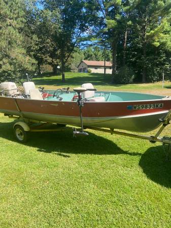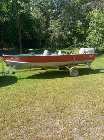 16ft Lund boat , 35 hp Johnson motor & trailer .