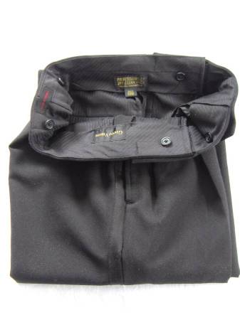 The jacket in size 36S is lined with no tears or stains, with a two-button front closure, several roomy inside pockets, and two false front pockets for a detailed look. Matching 30W tux pants, adjustable-waistband, comfort gore-elastic inserts for a great fit, easy-care wrinkle-free polyester material wipes clean. The slacks are currently hemmed to 29 inches but has a generous 7-inch inside turned-under-material so slacks could easily be shortened or lengthened with a quick hem-stitch with needle and black thread. Included is a Broadway Tuxmakers white pleated tuxedo long-sleeve button-down shirt in size Small 32/33 shirt (65% polyester, 35% cotton)for a finished look.