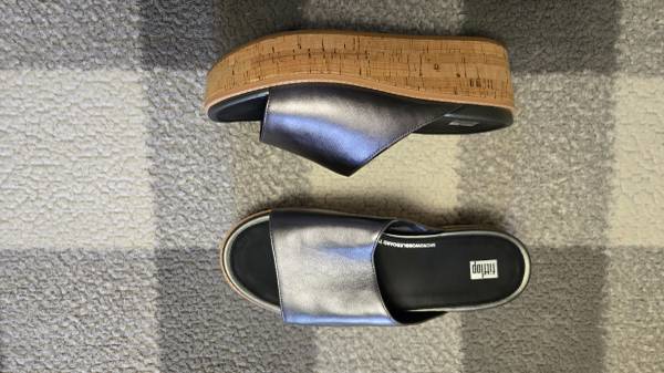 New FITFLOP brand Platinum colored leather platform sandal, LADIE'S SIZE 11 original price $120 Very cool summer shoe.Cash only. Excellent condition with Microwobbleboard Technology. WILL MAKE A...