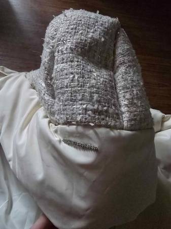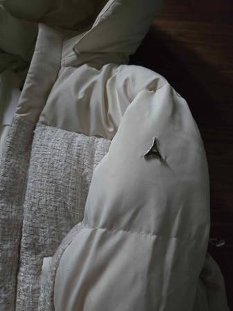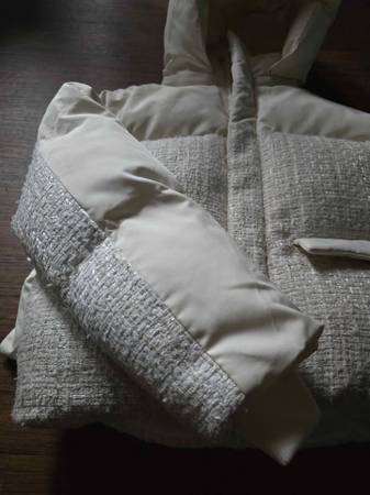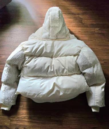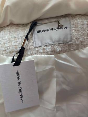 Price is firm. Located in Rhinelander. New with tags Maniere De Voir tweed down insulated oversized puffer coat. I believe there is a minor manufacturing defect with the brand name tag inside sewn...