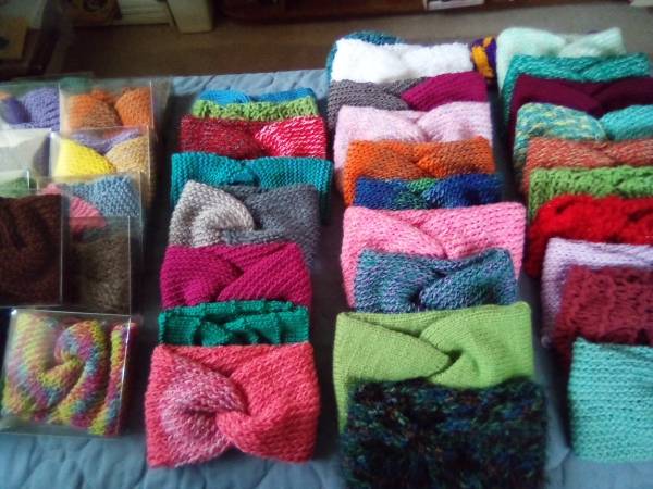 Some knitted, some crocheted. All locally made in Portage County and all are new. They stretch to fit most. Some in "Pointer" colors available too for those at UWSP! Each one is $10 with quite a...