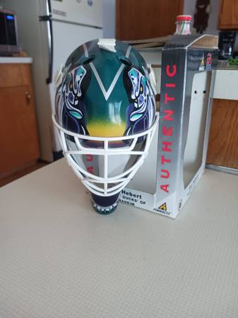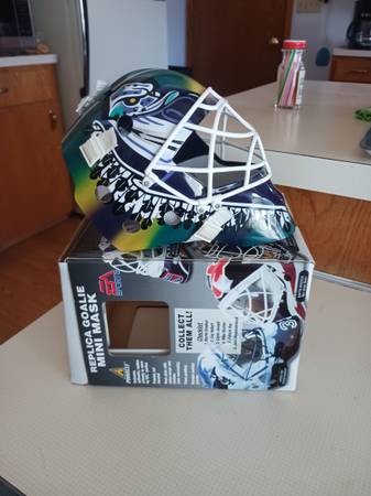EA Sports Pinnacle Guy Herbert Anaheim Mighty Ducks Mask dimensions are approx 7x5x4. Price is $30 plus shipping.
