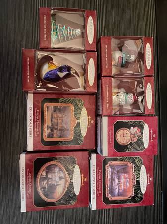Add some vintage charm to your Christmas tree with this Hallmark Keepsake collection. The blown glass ornaments feature intricate details and vibrant colors. This lot is perfect for collectors of ornaments, and would make a great addition to any holiday decor. Celebrate the holiday season with theses beautiful ornaments - a must-have for any Hallmark collector. The ornaments ares made of high-quality glass and features a timeless design. Whether you're looking for a gift for a friend or family member, or simply want to add to your own collection, this Hallmark Keepsake collection is a great choice.