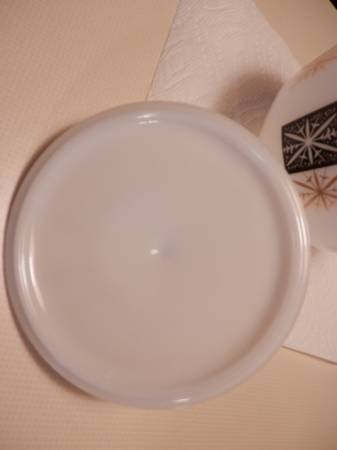 Exceptional Condition!! Fire King Bowl and Lid 6 1/2" Across and 5" High White Bowl and Lid with Black/Gold Detail Design NO Damage - been stored for years. Needs to be displayed and enjoyed. $50...