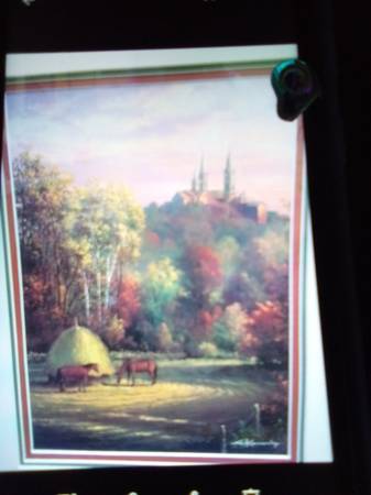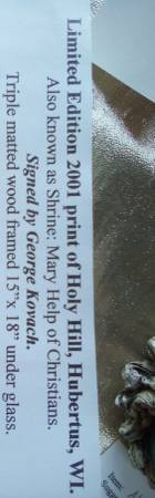 Limited edition Holy Hill, Hubertus, Wi 2001 framed print. Shrine Mary Help of Christians. George Kovach signed #657 of 1500. Triple matted wood framed under glass. Horses in foreground with...