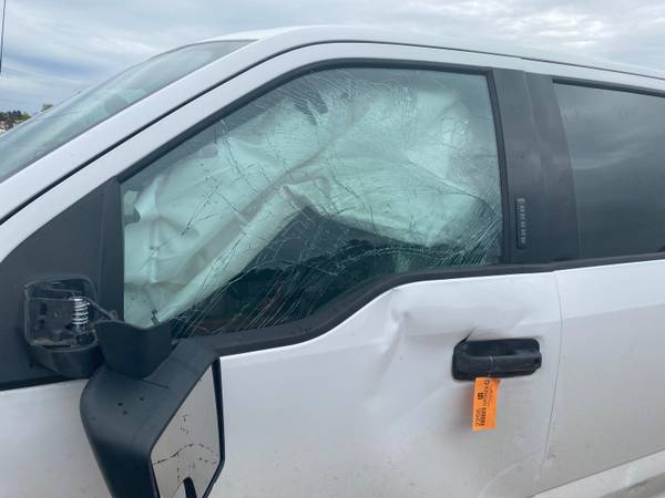 VIN: 1FTFW1E5XKFC13329, 5.0L V8 engine, automatic, crew cab, front end and drivers side damage from deer collision, curtain airbags are deployed, truck runs