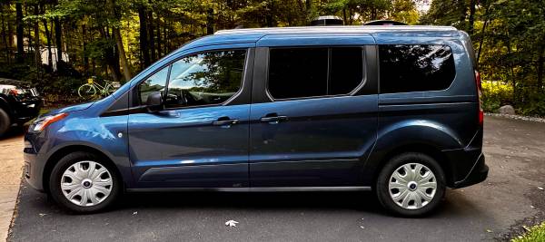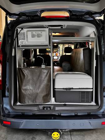 2019 FORD TRANSIT CONNECT XLT CAMPERVAN is comfortable, effecient, fits in a standard 7ft garage door. This DLM-Distributions Transit conversion camper is all set to camp, commute or run errands. Easy to drive on highways, in parks, towns, or cities. Shore/Battery/Solar Charging, 2000 watt power inverter, off grid electric system, shore station plug in, couch/bed (sleeps 2), microwave, sink with hand pump faucet, portable butane cook top, refrigerator, portable camp toilet, reversible ceiling fan, TV/DVD with TV antenna, wireless charging, back up camera, remote start feature, privacy front window curtain, multiple sunshades, rear windows limo tinted, two side window screens, Weather Tech front floor liners, wired trailer hitch. Maintained, clean, garage stored. Routinely serviced. New tires 2024. New brake pads and rotars-rear 2023, front 2025. 65,400 mi-90% hwy miles.