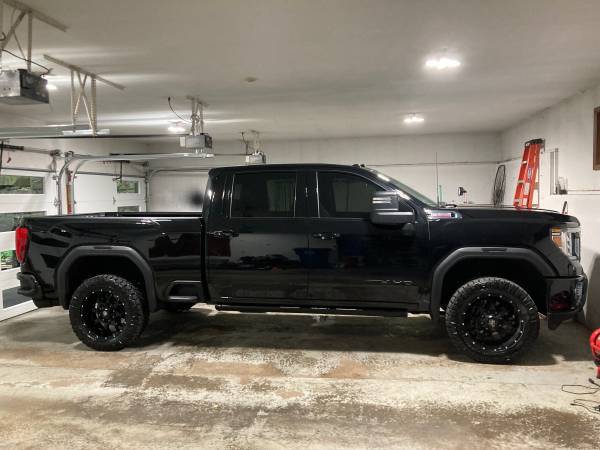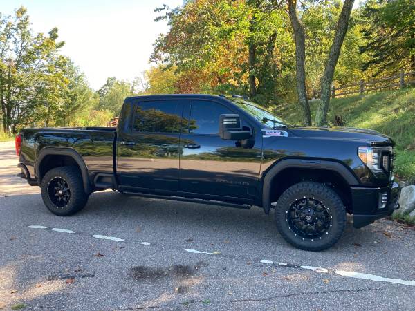 2020 GMC Sierra AT4 for sale .Diesel .83,000 miles. Clean and well taken care of. Not deleted. Black out emblems, Recon tinted fender marker lights, custom painted black tow hooks, exhaust tip, Mayhem wheels ( summer only) Nitto Ridge grapplers. Second summer on those with Discount Tire Certificate.Two new batteries 9/20/2025. This truck came with every option. A few minor scratches. Chips on both doors from oversized tires, coating on Amp steps peeling in places,minor surface rust underneath ,and moisture in taillight and rear cab light. Also, completely new fuel system around 50K miles ( DEF incident) These issues will not dramatically decrease my price. Comes with original set of wheels/ tires ( shown in last pic) .Hitch and gooseneck components not included Asking $53,000. Serious inquiries only. No joyriders or scamming allowed. Phone calls only please. Daily driver