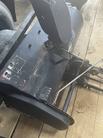 John Deere snow thrower, 42 inch fits John Deere sabre and maybe other machines. Excellent condition, 75 lb. wheel weights included. Phone calls only 715Four57Six639.