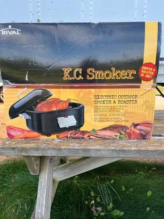 Rival K.C. smoker new in the box, never opened. Asking $75.00 OBO. Phone calls only 715four57six639. If no answer leave a message.
