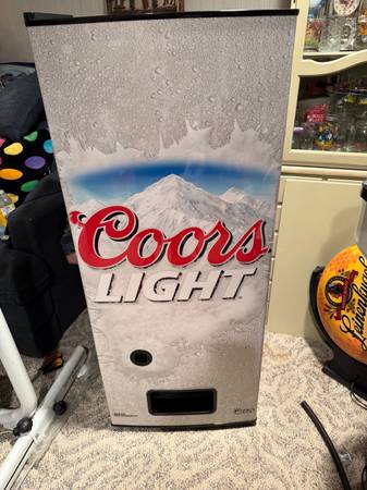 New, never used Coors light can fridge. I got it about 10 years ago and just didn’t use. The dimensions are 48” high, 19” deep, and 20” wide Please call