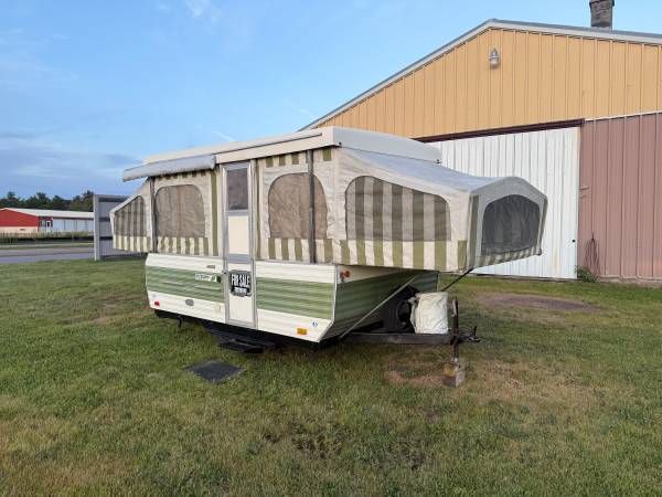 1976 sturey pop-up camper nice shape for the age New springs and lift system working water system with no leaks. Everything works as it should, furnace and cooktop work well, full lp tank and tires are good to go. We checked the wheel bearings and packed as well, not a perfect but it’s a cool vintage unit, and it dosent leak at all guaranteed