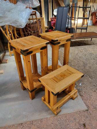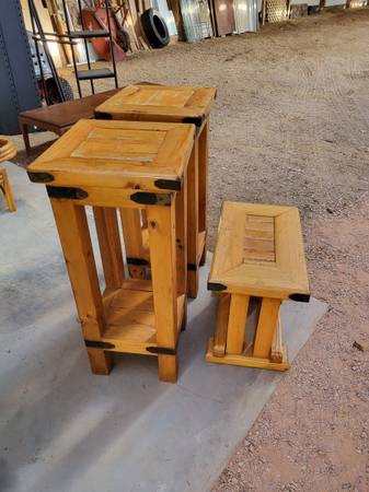 For Sale Set of three plant stands. Solid wood. On the heavy side. Asking $100 Call