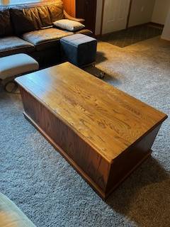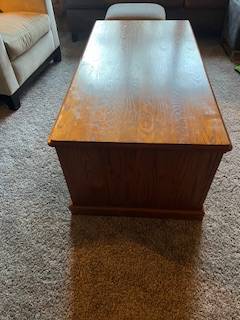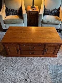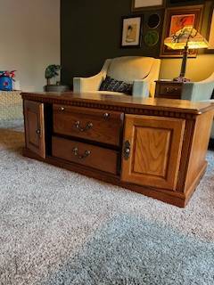 Coffee table in great shape, has small casters on bottom. 2 drawers and 2 doors, holds lots of toys. Post will be removed when sold.