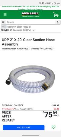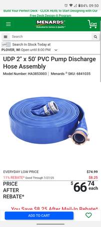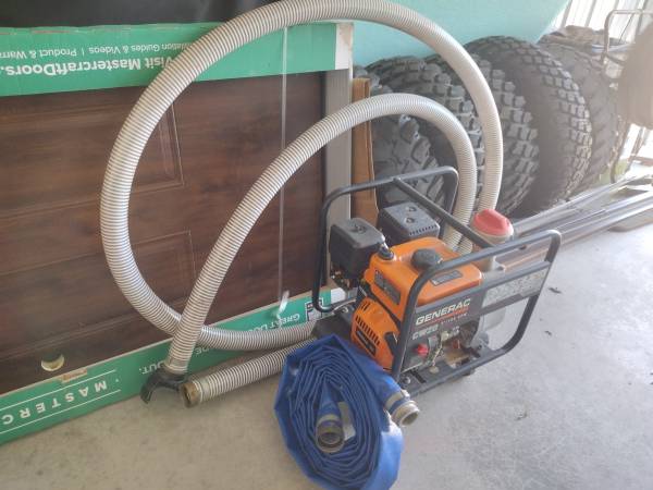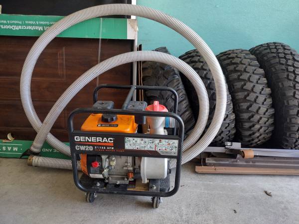 Generac CW20 Clean Water Pump with 2" X 20ft clear suction hose assembly and 2" X 50ft discharge hose assembly. 158 gal/minute. Used very little. $350.00