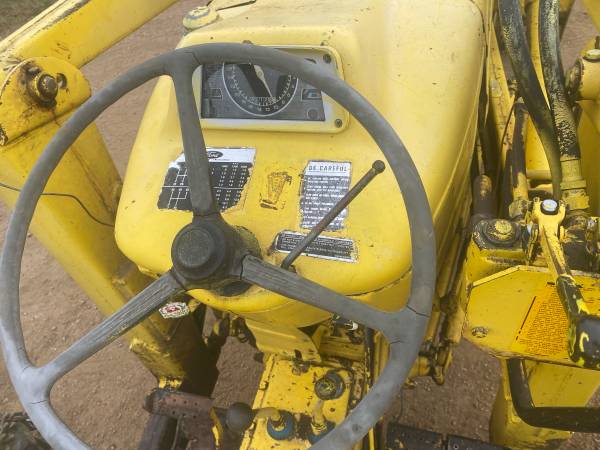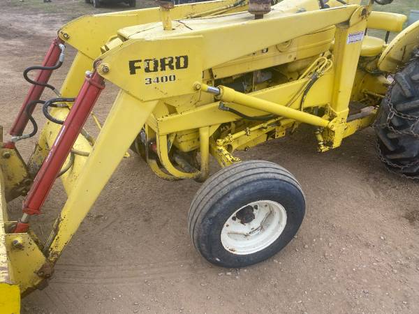 Ford 3400 Tractor with loader. The tractor runs and drives good. It’s a 40hp gas engine. Standard gear shift transmission with high and low. Has two rear remotes which is a rear option to have on these tractors. Tires are in good shape and comes with the chains shown in the pictures. Recently got a brand new hydraulic pump for the loader and it works very well. Power steering works good. Has a good seat. Tach and hour meter both work and shows 4000 hours.