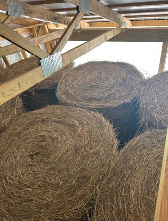 I have a total of 77 tightly wrapped 4’x 5’. All first crop, baled end of July. Mixed grasses. 35 of them have about 15% clover and stored inside. 7 of them are orchard and rye grass stored inside. These are $35.