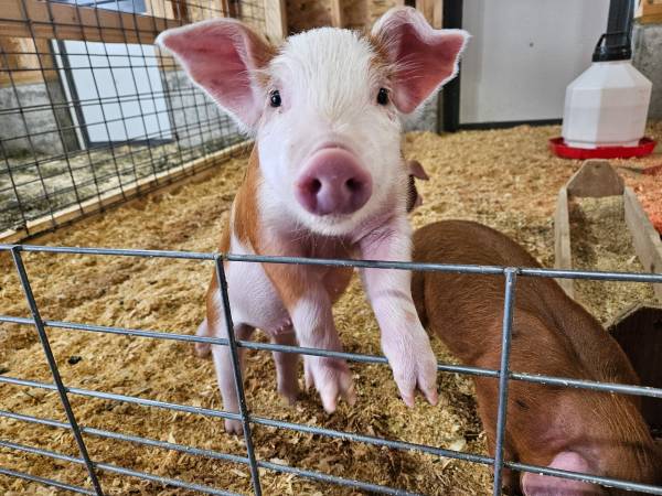 Incredibly friendly pigs ready to go in early December. Perfect for families with children that want to be involved with raising pigs. They've even been taught to sit for a treat 😁 This litter is 75% hereford/25% berkshire out of Southern Gold's "Wheels." $130 each. Males have been castrated. Delivery available for extra fee. Check out our Facebook page (The Bacon Barn) to see just how special our pigs are!