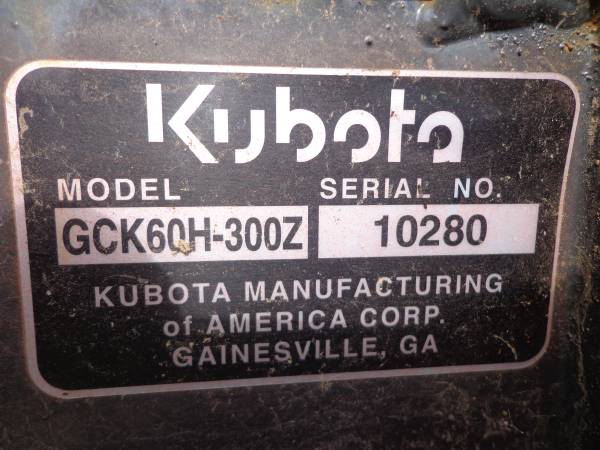 Kubota Bagger System fits Kubota ZD300 & ZG300 series Kubota GCK60H-300Z Fits Kubota ZD300 SERIES ZD321, ZD323, ZD326, ZD326H, ZD326S, ZD331, ZG327, ZG332 Lightly used Cash only!!!