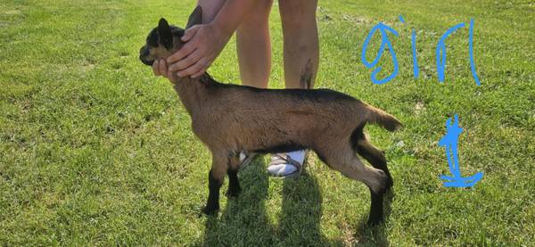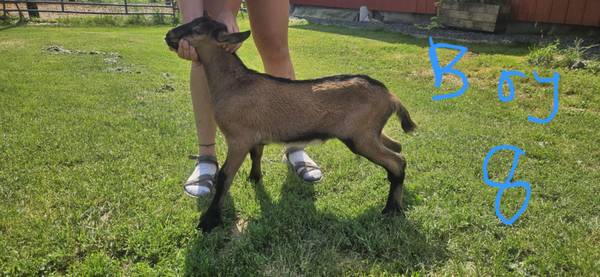 Alpine/Oberhasli/Toggenburg cross dairy goat kids. Buckling and doelings available. Around 10 weeks old, just weened, eating grain and hay well. All have been disbudded. ***Doelings all have been...