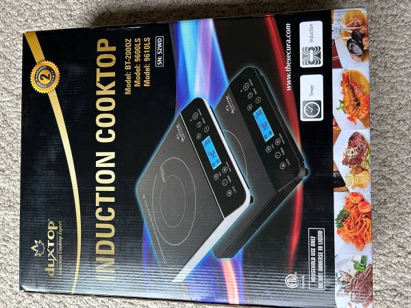 Duxtop Portable Induction Cooktop, Countertop Burner Induction Hot Plate with LCD Sensor Touch 1800 Watts, Silver 9600LS/BT-200DZ. Used twice, Excellent condition, like new, I have the manufacturer box. Bought on Amazon September 26,2022. Paid $119.00. I have the online receipt. Questions please contact me.