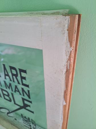 The window is in good to excellent condition, I think, for its age and use. No wobbliness in the corner joints. No cracks in glass. The vinyl application is in excellent condition. See pictures for size and condition.