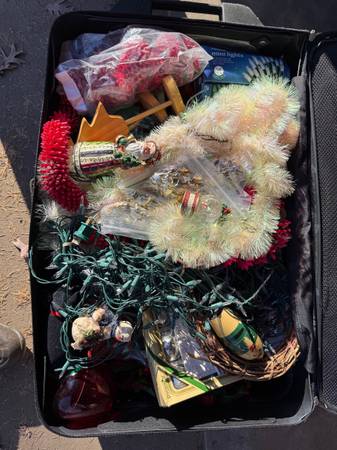 Large collection of Christmas decor, including wrapping paper and collectibles