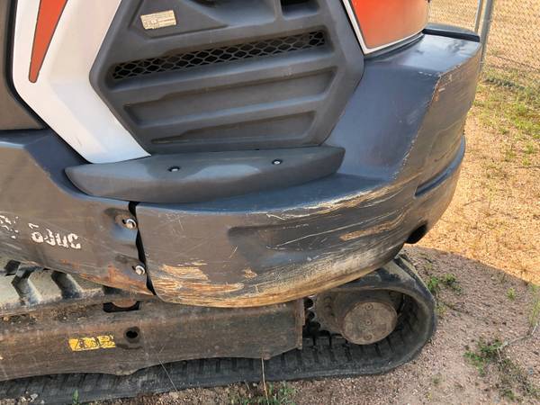 PIN: B3Y111729, Hours: 3202, Kubota D1703 engine, E32I, long arm, cold a/c, thumb with 24" bucket, manual x-change system, good operating unit, 12" rubber tracks, 61" blade with manual, driven off trailer, runs and operates per seller