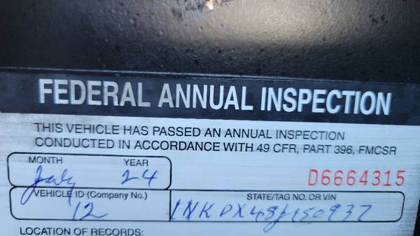 263,728 MILES, 11,967 HOURS, 500 HP CUMMINS ISX15 DIESEL ENGINE, ENGINE BRAKE, 8LL TRANSMISSION, 4.3 RATIO, CHALMERS SUSPENSION, 20/46 AXLES, 18K PUSHER, 24,500 LBS EMPTY, ALUMINUM WHEELS, 220 INCH...