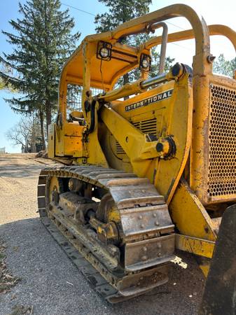 1970 International 125C Crawler Loader , starts runs and drives good , 4 cylinder Diesel engine 69hp , power shift transmission , rear hydraulics , rear counter weight , excellent undercarriage , steers nice , weighs 18000lbs , 7500lbs lift capacity , delivery available , any questions text or call David at show contact info
