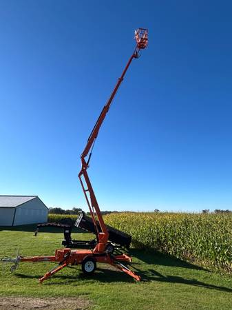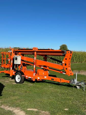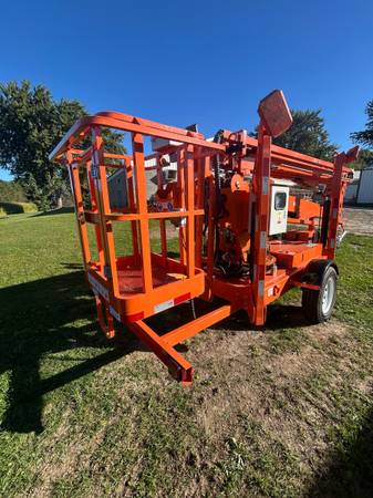 Shandong SJT-16 towable lift. 58 feet total height Runs on 4 batteries, has onboard charger, does have an engine. Has hydraulic outriggers, 110 power to the basket. This is new but has some minor...