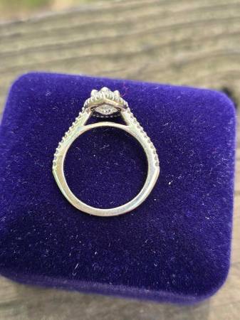 Price is firm. Located in Rhinelander. Beautiful 14k white gold pear halo diamond ring size 5.5. It has a total carat weight of 1.85. The melee diamonds are .31 carats total, round, H color, and VS2 clarity. The center stone is a 1.54 carat IGI certified CVD lab diamond with VVS2 clarity, F color, and is laser inscribed with its identification number. It includes the IGI report.