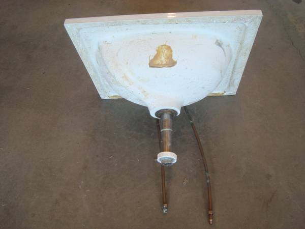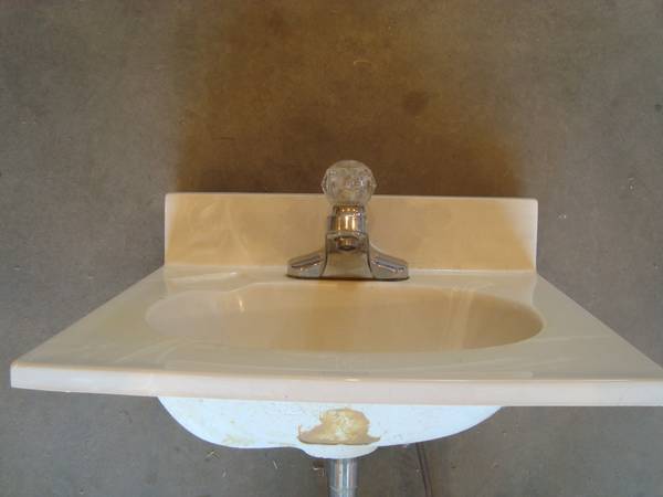 Cultured marble vanity sink with faucet and drain. 17" front to back 20" wide