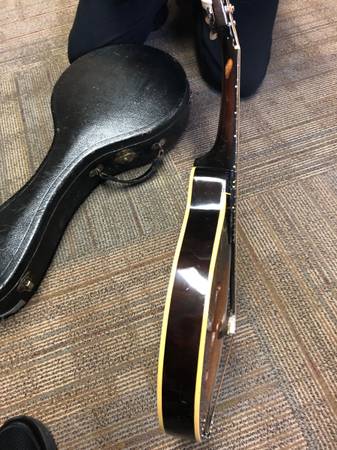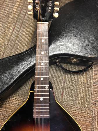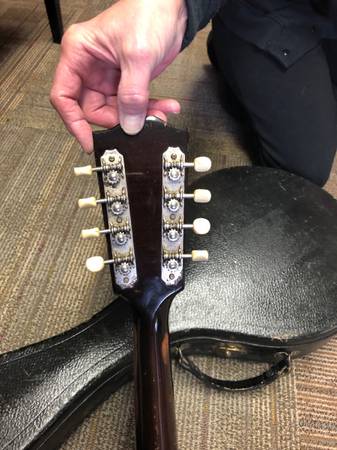 Selling a mandolin, according to Jerry’s Music store, is a 1943 Gibson.