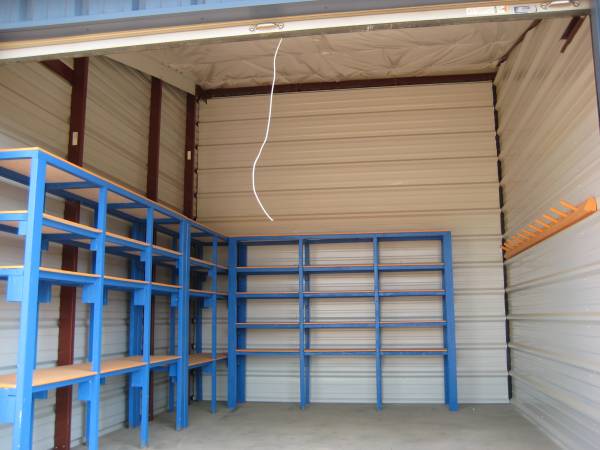 All units have insulated ceilings with heavy duty liners. Some units available with shelving. Buildings include seamless rain gutters and outside lighting for night security with 24-7 access.