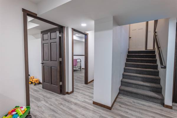 Down the hallway brings you to the 3 main bedrooms and first full bath. The master en-suite is a few more stairs granting privacy and separation from the rest of the home, and features a generous walk-in closet and full bathroom with a dual tub and walk in shower with a rain head fixture. The lower level has been finished to add 2 more bedrooms and an additional family room, with the opportunity to add a 3rd full bathroom. The lower level also has a utility/laundry room with a daylight window, owned water filtration/softening system, and 200 amp service.