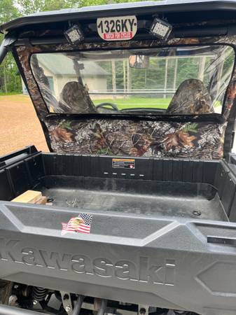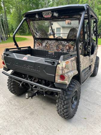 Just like new 2021 Kawasaki Teryx 800 camouflage. Only 250 miles and 25 hours. all the options have been added. Roof,side doors, winch with synthetic rope and remote control, rearview mirror, rear bumper, windshield that opens, custom seat covers with pockets, front and rear, LED lights, rear window, rear storage, and new custom wheels and tires. Machine has had all the fluids changed at 200 miles. Better than new and ready to ride. Call 7one5-57one-0787. First $15,500 cash takes it.