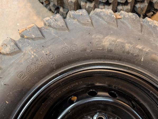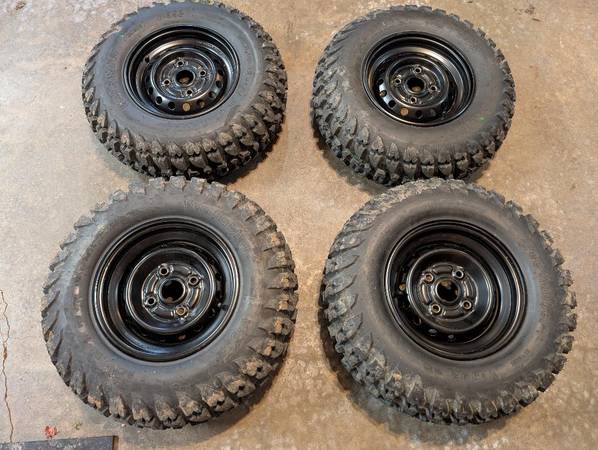 New take offs from a 2025 Honda Pioneer 520. 4x110 wheel spacing, will fit Honda and some others. Fronts are 24x8x12, Rears are 24x10x12. Less than 1 mile of wear. Will not separate. Don't need help selling. If it's listed it's still for sale. Seven1five4onine1nine6three.