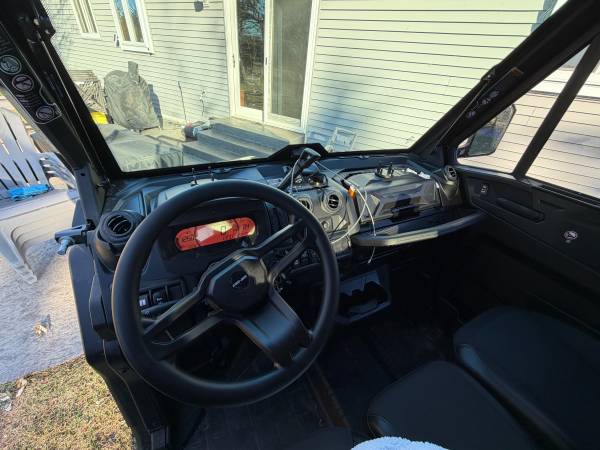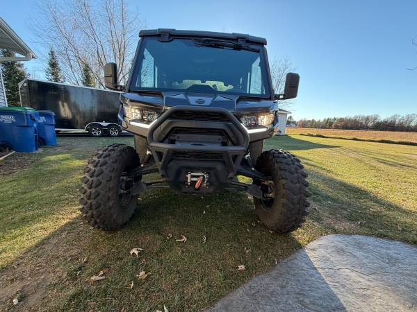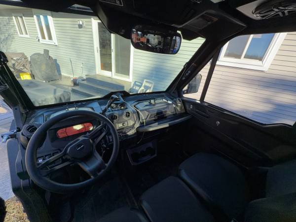 Only 1,937 miles. Purchased from Bill's in Stratford and they have completed the 50 hour service. Heat, AC, JL Audio six speaker system, 6 passenger, Can-AM mirrors, turn signals, power front windows, tinted windows, jack, spare tire and lock. Winch has never been used. Mostly road miles with some mild trail riding. Super nice year-round machine! Not interested in any trades. If it's posted, it's available.