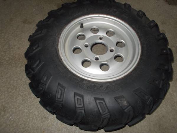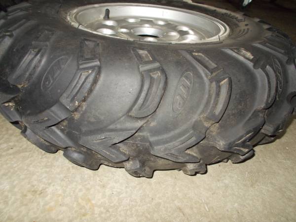 2003 Suzuki Vinson 500 Front 4/110 Rim Wheel 25X8-12 Tire. 80% Tread ITP Mud LIte