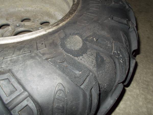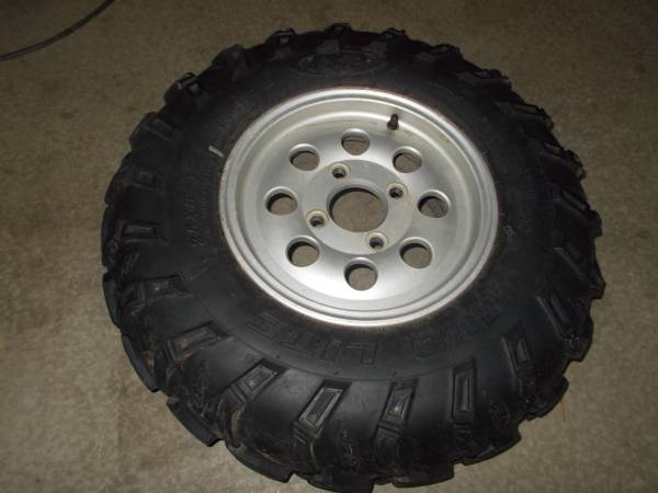 2003 Suzuki Vinson 500 Front 4/110 Rim Wheel 25X8-12 Tire Tire is Bad: Has Blister from driving in a fire. Hold Air though. See Last Picture. ITP Mud Lite 80% Tread