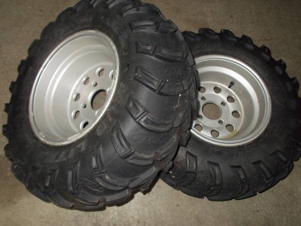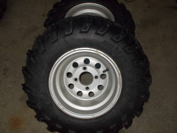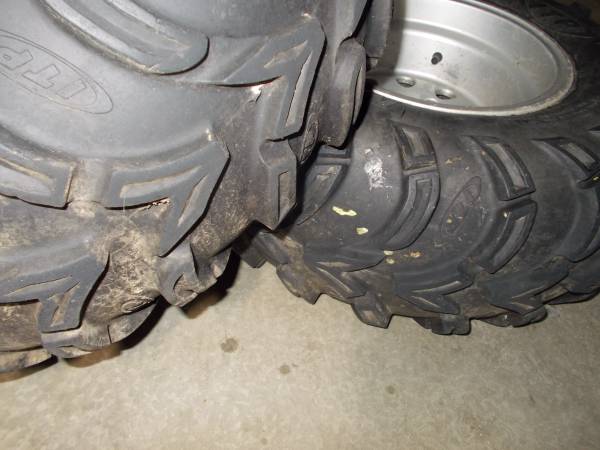 2003 Suzuki Vinson 500 Wheels 4/110 Rims Rear 25X10-12 / 80% Tread. ITP Mud Lite / 6 Ply